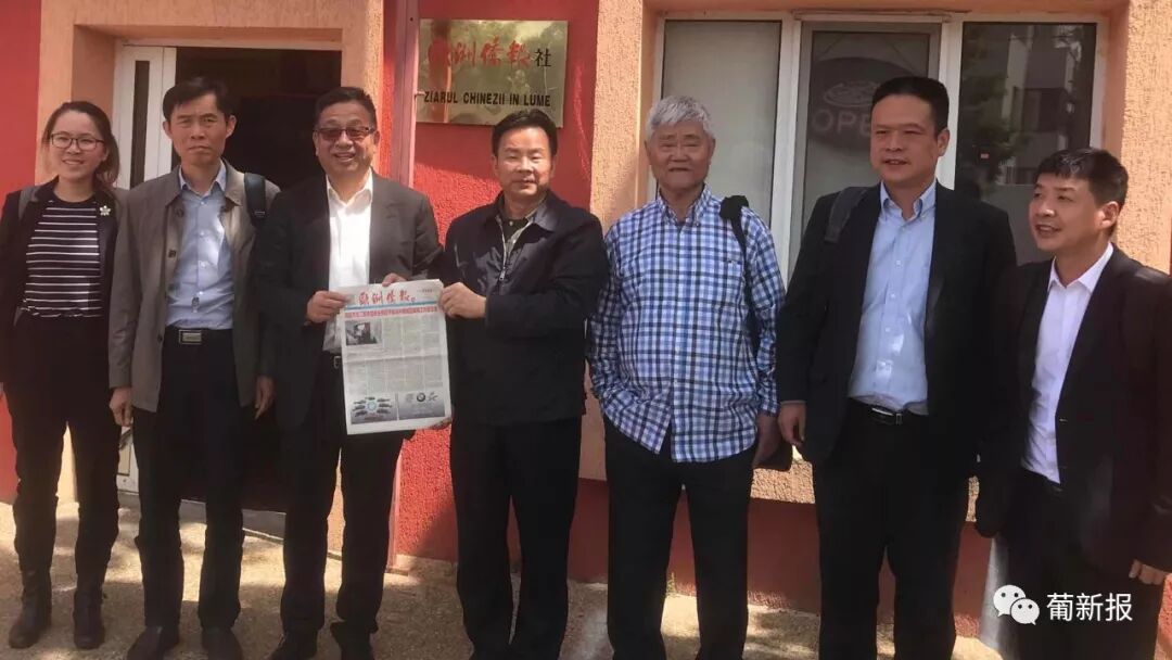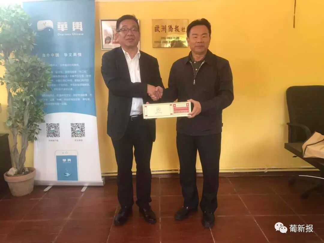 随后,肖部长与报社互赠礼品。肖部长给报社赠送了礼品之后,报社回赠了一摞刚刚发行的《欧洲侨报》,肖部长嘱托随行人员带回海南。
