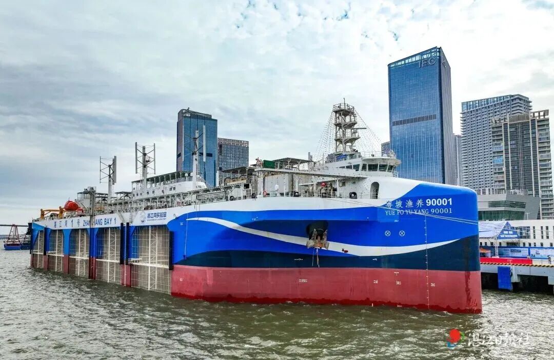 01 五年磨一剑 把论文写到大海上 传统近海养殖已逼近环境承载力上限,而深远海养殖受限于装备技术。 为此,湛江湾实验室组建了由海洋工程、水产养殖、新能源、人工智能等多学科专家组成的“攻关团队”,将“湛江湾1号”列为实验室第一任务,砥砺创新,开启了为期5年的技术攻关。 “湛江湾1号”的每一块钢板、每一套系统,都凝结着实验室“把论文写在大海上”的初心。 “湛江湾1号”总长154米、总宽44米,承载8万立方米养殖水体,可年产鮸鱼、金枪鱼等名贵鱼类2000吨。从图纸构想到养殖重器,“湛江湾1号”的研制,是一场与技术瓶颈的较量,在“船箱一体”的设计革命、“绿色能源”的自主供给、“AI养鱼”的智能升级三大关键领域破局,开启绿色化、智能化深远海养殖变革。 “AI养鱼”是其中最引人注目的亮点。“船上仅需配置3到4名养殖人员,工人在监控室通过按钮操作,即可实现自动投苗、投喂和成鱼捕捞。”项目部负责人林晓杰介绍道。 02 科技惠民 从深海牧场到百姓身边 不久后,“湛江湾1号”将驶往硇洲岛外约30海里海域,率先投放大规格赤嘴鮸进行养殖试验。平台计划于明年上半年增养金鲳鱼等品种,后续将根据养殖成效与市场情况分批上市销售。 深海养殖之外,“湛江湾1号”致力于构建“科技惠民”的共享生态。 11月19日—21日,“湛江湾1号”开启为期3天的公众开放日,这是科技走近公众的生动实践。公众可在“湛江湾实验室”微信公众号实名预约。 平台不仅每年可产出2000吨优质海产,满足人民群众对高品质水产品的需求,更通过开放参观与科普教育,让公众近距离感受“AI养鱼”“绿色能源”等前沿科技的魅力,真正实现“创新成果由人民共享”。
