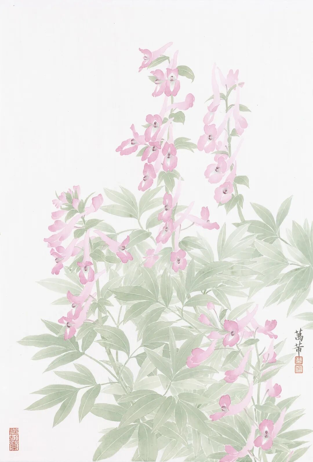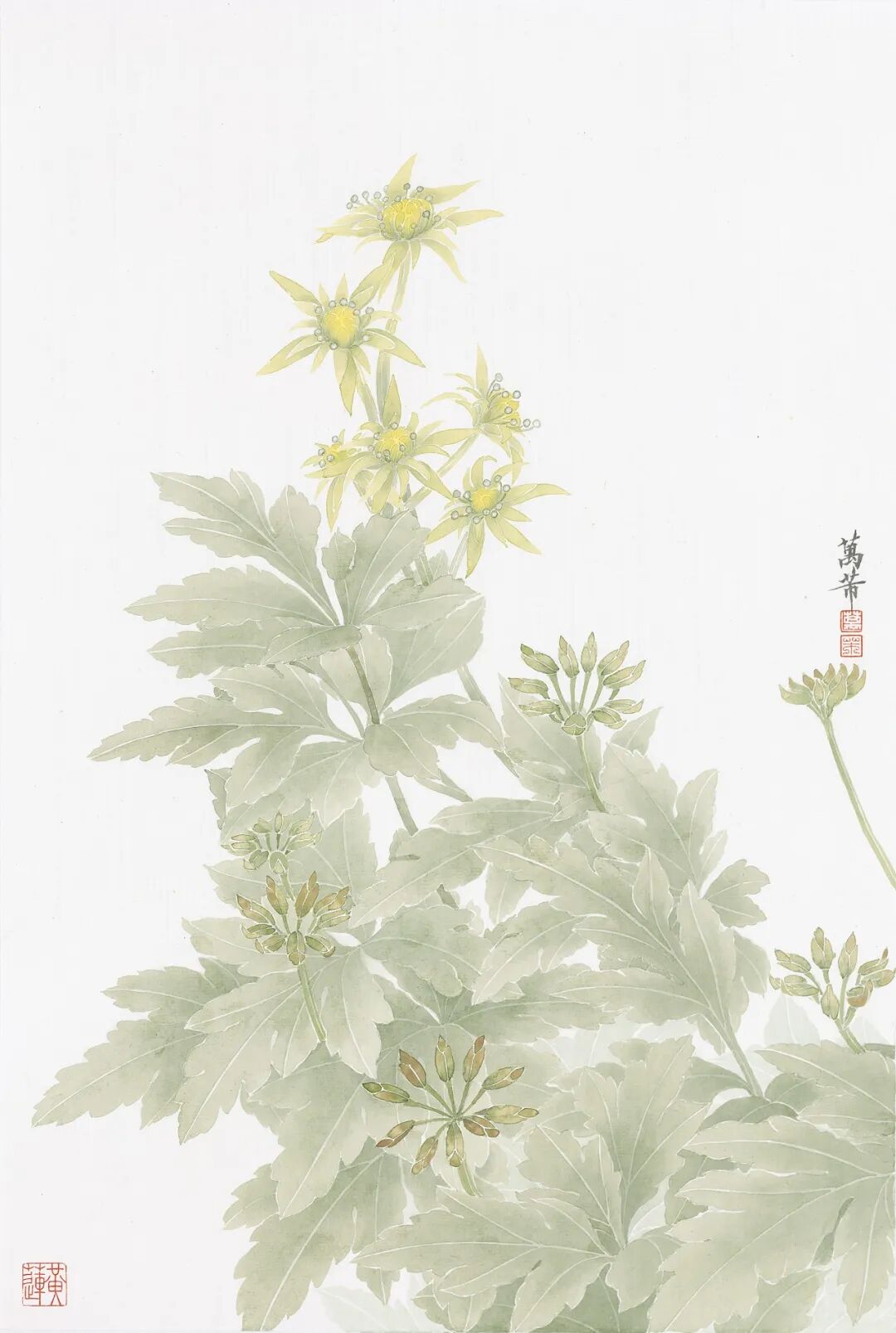 著名工笔花鸟画家、上海文史研究馆馆员、上海中国画院画师、上海觉群书画院画师万芾近年来从《本草纲目》中汲取灵感,尝试用中国画技巧绘制药用植物。