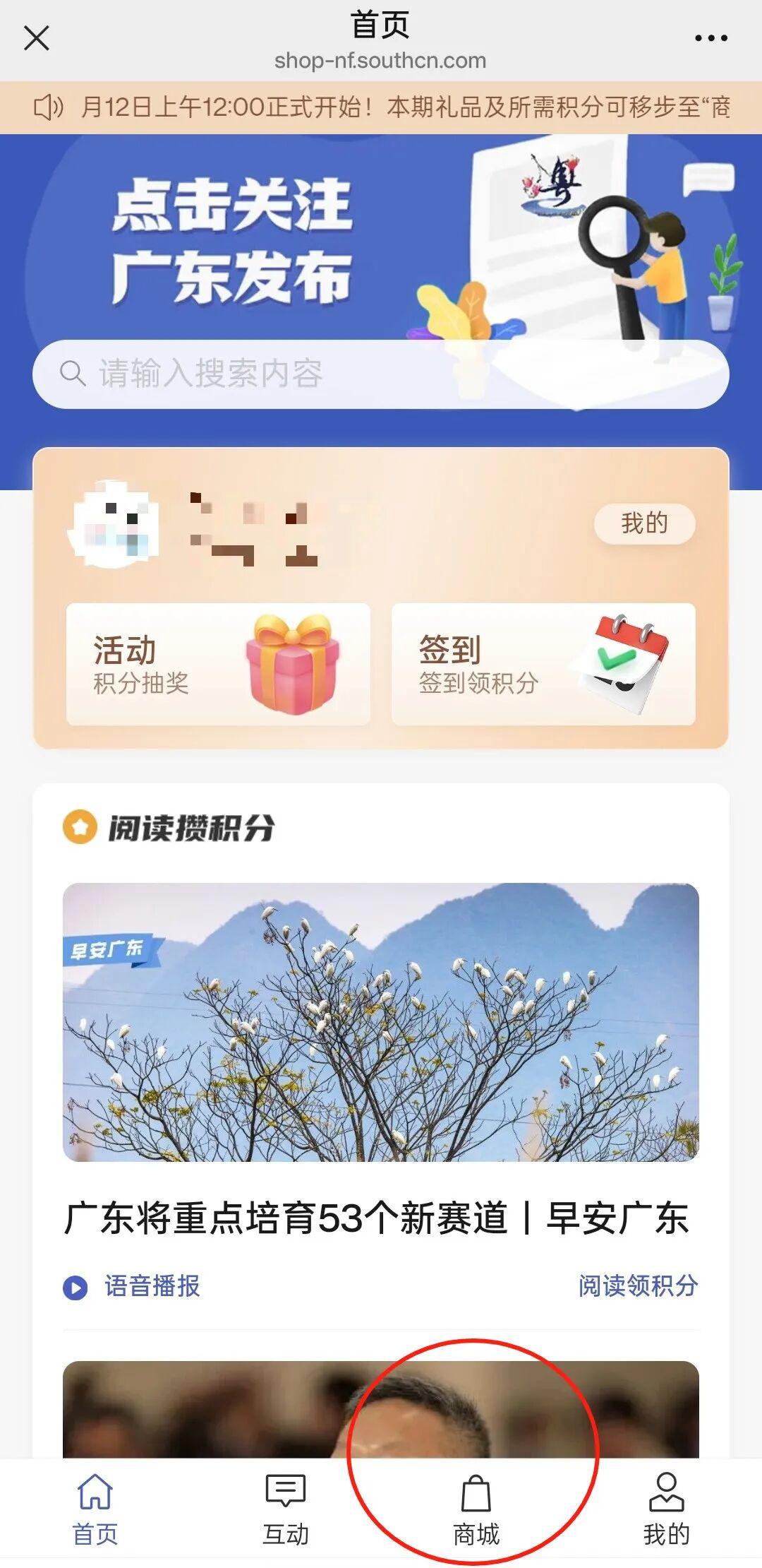 点击“粤友会”进入“商城”
