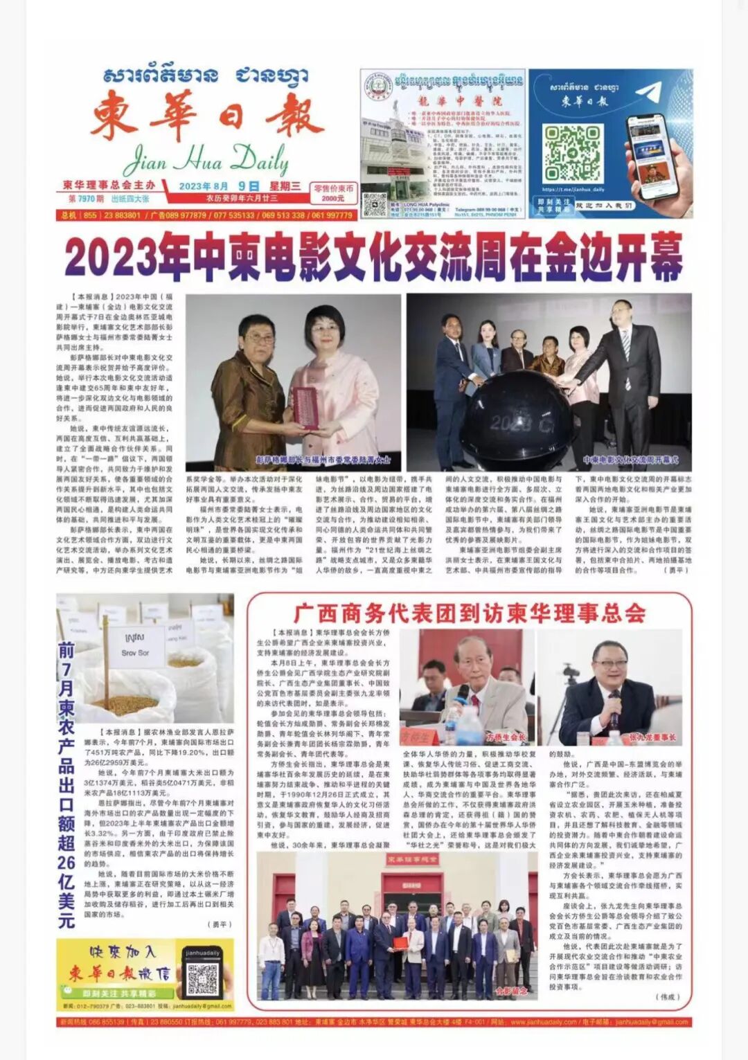 2023年中国(福建)—柬埔寨(金边)电影文化交流周开幕式7日在金边奥林匹亚城电影院举行,柬埔寨文化艺术部部长彭萨格娜女士与福州市委常委陆菁女士等共同出席。