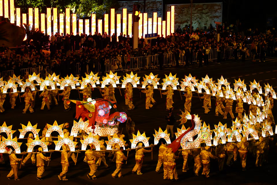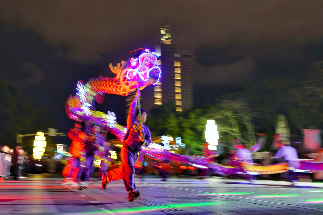3月2日晚,丽水市区灯火璀璨,人潮涌动。伴随着喧天锣鼓,丙午(2026)“丽水祥龙闹元宵”活动正式拉开帷幕。这场以“穿越千年的非遗寻龙之旅”为主线的盛会,紧扣“一县一非遗”主题,来自丽水九县(市、区)和经开区的10支舞龙队、千余名队员手举各式龙灯,汇成千米长阵,所有龙灯都融入夜光设计,流光溢彩间,长龙蜿蜒如星河入城,街头巷尾挤满翘首以盼的市民,喝彩声不绝于耳。与往年不同,今年元宵活动特别设计了南明湖水上巡游环节,云和水上蛟龙踏浪而来,沿银泰城临湖段蜿蜒行进,绘就“水中游龙、岸上龙腾”的壮美长卷,将山水文化名城的独特魅力展现得淋漓尽致。