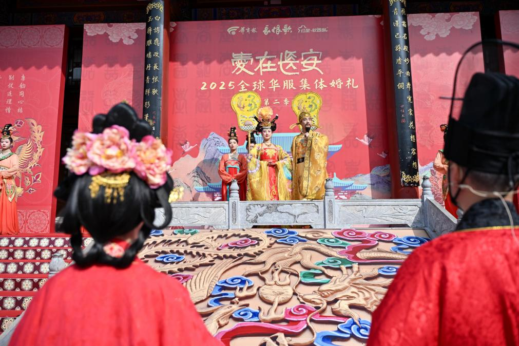 “爱在长安”2025全球华服集体婚礼,深入挖掘西安丰富的文旅资源,积极倡导婚俗新风尚,搭建起历史与现代对话的桥梁,书写中国文化对外交流的新篇章。