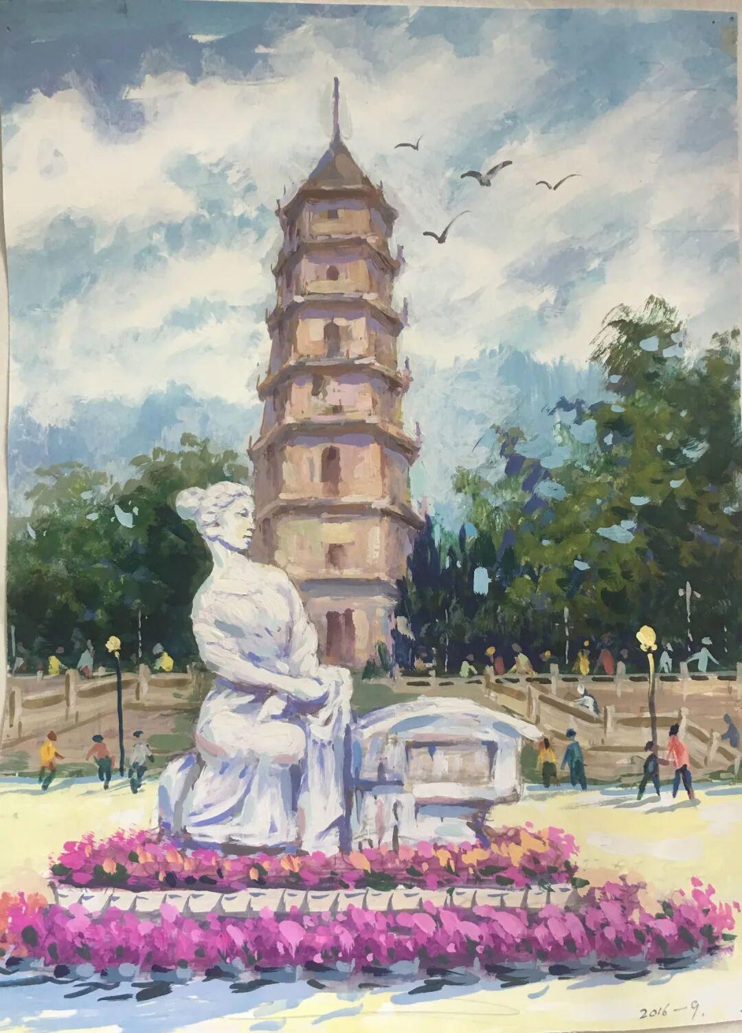 来自英国的赖秋妍同学以水粉绘就《解放大桥》,将闽江的诗意流淌于笔端,用色彩勾勒出对“诗画闽江”的深情凝望与文化眷恋。