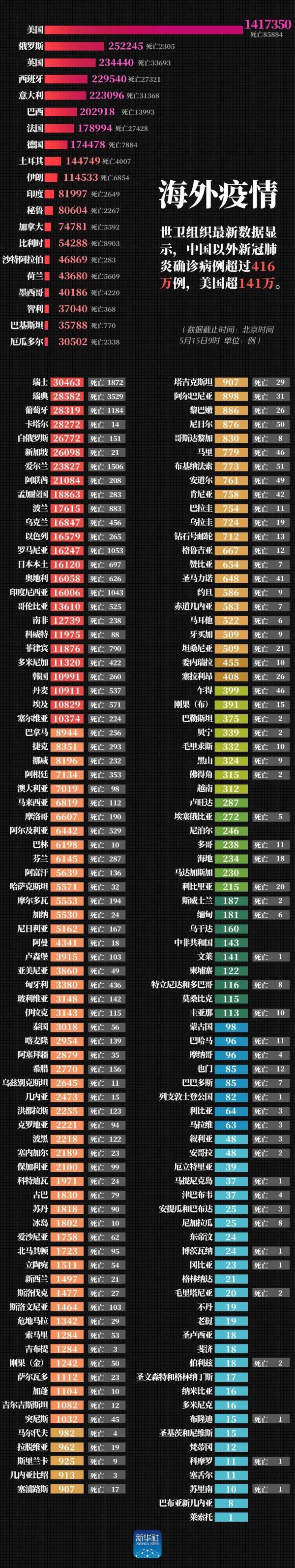 最新!美国超141万例,中国以外确诊病例超过416万例