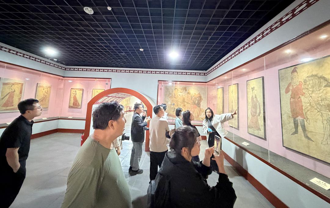 媒体团依次参观各展厅,从彩绘釉陶俑的精湛工艺,到各大名家碑刻的书法神韵,再到唐墓壁画中鲜活的唐代生活图景,无不令人赞叹。馆内收藏的 4550 件昭陵陪葬墓出土文物,以及近千件征集、移交文物,跨越 107 年盛唐时光,成为见证 “贞观之治” 的实物瑰宝。