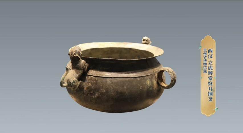 (西汉 立虎辫索纹耳铜釜)